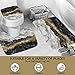 🛀【SIZES INFORMATION】- Marble bathroom sets with shower curtain and rugs and accessories with 12 shower hooks, Black marble shower curtain size 72"L x 72"W, the bathroom rug size: 29.53"L x 17.71"W, the toilet lid cover size: 17.32''L x14.97''W, the U shape rug size 17.71"L x 15.36''W, The ideal bathroom sets size fits the needs of most people bathrooms