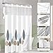 【All-in-One Shower Curtain Set】Waffle weave shower curtain with snap in liner, free 12 metal hooks. Using advanced digital printing technology, the leaf pattern is high-definition and vivid, durable and not fading, bringing hotel comfort, elegant and luxury to your bathroom.