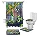 【Good Size】Animal shower curtain for bathroom: 70.9" L × 70.9" W, Bath Mat: 29.5" L × 17.7" W, Toilet Lid Cover: 17.7" L × 13.8" W, U-shaped Non-Slip Rug: 17.7" L × 14.9" W, Suitable for most standard bathrooms