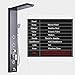 ใShower Tower MaterialใThe shower panel is constructed of precision high-grade 304 stainless steel to be durable and corrosion resistant, brass mixing valve and shower diverter valve included. Creating a New Look for your bathroom, enjoy SPA at your home.Temperature of the water can be displayed directly, so you could adjust water temperature for lower the scalding risk ( battery not included๏ผneed to buy separately).