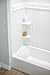 Includes two side panels, one back panel, two corner molding strips, two corner soap shelves, and color coordinated silicone
