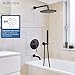 [Design]:The black shower faucet set has 10 inch ultra-thin round overhead shower design with air in tech. 3 Function Tub Rainfall Shower Combo Set and round shower head system design