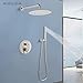 [Function]:Two functions include shower Head and shower handheld ,round rainfall shower head with handheld, high pressure and large water flow bring you comfortable shower experience.Shower valve comes with built-in diverter, provides smooth and easy function switching operations.