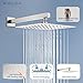[Material]:High quality stainless steel 304 rainfall shower head and excellent brass shower handheld, plumbing connections NPT1/2'',Rough-in Valve & Trims Cast from high-quality brass, this shower system is durable and will not rust.
