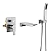 SHOWER HEAD WITH HANDHELD SPRAY: This ultra-thin rainfall shower system with 12-Inch rainfall shower head,handheld spray and bathtub spout, provides consistent powerful rain shower but comfort skin-friendly water-stroking instead of water-impact sting