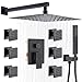 ใADJUSTABLE ANGLE PARTSใ: 12'' rain shower head, handheld sprayer, and body jets of this shower head system are upgraded with the angle-adjustable feature, which can provide you the ideal shower angle. 6pcs shower body jets help you relaxing your muscle, you can enjoy a Full-Body Shower.