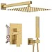Package include: 1*12 inch Square rain shower head(304 stainless steel), 1*handheld shower head(Brass), 1*16 inches shower arm(Brass), 1*1.5M shower hose(304 stainless steel),1*shower holder(Brass), 1*shower mixer control valve(Brass);