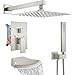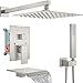 【Special Feature】: 12" large square showerhead, Large water pressure makes the shower very pleasant. It looks like standing in the nature and enjoying the feeling of rain stroking.The waterfall is perfect as well.Our shower valve comes with built-in diverter. Ceramic disc diverter valve provides smooth and easy function-switching operations.