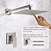 12 INCH SQUARE RAIN SHOWER HEAD: Featuring a 12" Ultra-Thin rainfall shower head(Brushed Nickel), it delivers a wide range of soft rain spray to fresh your body and mind. Besides, the nozzle on the rain showerhead, made of silicone, is easy to clean.
