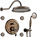 Package Contains: 8 Inch brass 360° Rain Shower Head , Shower arm, Handheld shower holder, Handheld shower, 6pcs body jets, Rough-in valve, All install hardware.