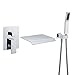 Come with a lever handle to smoothly adjust the water flow and temperature and a diverter knob to conveniently switch between waterfall spout and hand shower.
