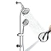 【High Quality Material】 The high pressure shower combination is made of ABS material, which is not easy to rust, ensuring that the surface of the shower head is not easy to scratch, light, corrosion-resistant and durable. And heat and cold resistant, easy to clean. The unique self-cleaning nozzle is made of mineral-resistant silicone that resists lime and mineral deposits, which are easily removed by rubbing the nozzle back and forth with water.