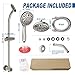 EASY TOOL-FREE CONNECTION - No plumber needed, no tools required, mounts instantly, no drilling or wall damage! We have clear, step-by-step instructions with pictures to guide you through the 5-minute installation.27.5" stainless steel drill-free bar with adjustable slider, 5 ft flexible stainless steel shower hose with 2 brass nuts, washers, teflon tape, installation mannual & warranty included, fits any standard shower arm.