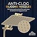 ANTI-CLOG & EASY TO CLEAN - Easy to clean nozzles with anti-clog silicone jets offer an attractive, even spray pattern with consistent high pressure. Silicone material prevents lime deposits and hard water buildup. Chrome plated ABS material is easy to wipe down.