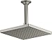 Single Function Shower Head: Square rain shower head with angled nozzles that provide full-coverage for a drenching spray experience; shower head rainfall has a flow that is ideal for everyday use, 1.75 gpm (6.6 lpm) flow rate., Vibrant Brushed Nickel