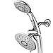 Dual Shower Head System Includes a 7-setting 4-inch Shower Head, a 7-setting 4-inch Handshower, Patented 3-way Water Diverter with Anti-swivel Lock Nut, Angle-Adjustable Overhead Bracket, and Extra-Long 6 foot Stainless Steel Shower Hose