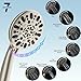 7 Settings Handheld Shower Head: 5-inch shower head face featuring rub clean spray nozzles for easy cleaning. Shower heads in brushed nickel offers a customized showering experience, allowing you to choose from Seven (7) spray powerful high pressure settings to best suit your needs. The water flow regulator can adjust the water pressure to save water everyday. It's great for bathtub cleaning, bathroom hair washing, pet shower, or baby bath.