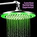 Giant 10 inch LED Rainfall Shower Head with Reflective Chrome Face and LED Perimeter Rim is Powered by running water, no batteries | Color of LED lights changes automatically according to water temperature