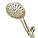 7 Settings Handheld Shower Head: 5-inch polished brass shower head face featuring rub clean spray nozzles for easy cleaning. Shower heads in polished brass offers a customized showering experience, allowing you to choose from Seven (7) spray powerful high pressure settings to best suit your needs. The water flow regulator can adjust the water pressure to save water everyday. It's great for bathtub cleaning, bathroom hair washing, pet shower, or baby bath.