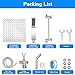 🛀 Large Square Rainfall Shower Head :- 12'' Square shower head made from 304# stainless steel and 196 self-cleaning silicone nozzles for superior water flow coverage. Soft silicone jets prevent lime scale build-up for maintenance-free enjoyment, resistant to clogging, easy to clean, anti-oxidation and corrosion resistant. It comes with leak-proof connection and angle-adjustable tough ball joint nut for satisfying different position shower needs. Will give you a excellent shower experience.