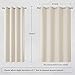 The package includes set of 2 beige blackout curtains; Each panel measures 42 Inch wide by 63 Inch long.