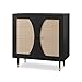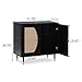 [Ample Space with Adjustable Shelves]: Measuring 31.5 "L x 15.75 "W x 30.7 "H the black sideboard has 2 large separate spaces inside to store everyday items. The sideboard cabinet also features adjustable shelves for taller items such as wine and some wine glasses. This rattan sideboard is breathable and dehumidified.