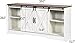 [Farmhouse Modern Design]. This coffee bar cabinet pairs a pure white modern style with a wood grain colored tabletop for a classic farmhouse modern look. Combined with black metal accents and gourd legs, this Farmhouse Modern white coffee bar cabinet is elegant and vibrant. The arrow-shaped barn doors are unique and distinctive, and the sliding doors create a symmetrical aesthetic on either side or in the center. Add a new dynamic element to your modern style farmhouse style decor.