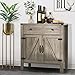 [Farmhouse Buffet Cabinet]: The gray wood grain design with classic washed lines and barn doors gives you a vintage experience. The combination of black durable hardware and wood completes the whole washed gray coffee bar cabinet to suit your farmhouse modern home decor style.