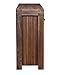 Made of high grade MDF with wood veneer for top and pine wood for frame and legs, the cabinet is highly durable with heightened stability. Three doors with antique bronze pull handle, make it easy to open and close the door.