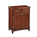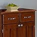 Medium cherry cabinet with a stainless steel top having a two door cabinet with an adjustable shelf and two utility drawers