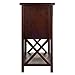 The X-style design of the Xola Wine Cabinet adds a unique touch to this versatile and handsome cabinet. The unit features a removable 12-bottle wine grid and two cabinets with tempered glass doors, each with a removable shelf. A lower shelf is ideal for displaying serveware or for additional storage space. Made of Solid and Composite Wood in a Cappuccino finish.