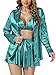 TRENDY DESIGN: Satin Pajamas For Women/Short Sleeve Pajamas Shirts For Women/Button Down Tops For Women/High Waist Shorts For Women/Silk Sleepwear For Women/Solid Color Loungewear For Women/Summer Shorts Set For Women/2 Piece Casual Outfits For Women/Comfy Lounge Set For Women/Cozy Nightwear For Women/Drawstring Pjs Shorts With Pockets