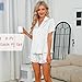 Unique Design: 2 piece PJ set include pullover top and shorts. Pajama shirts feature split V-neck, drop shoulder, exposed seams, ribbed details, aim to bring you a cozy relaxed fit. The cute matching shorts with soft elastic waist, as well as adjustable drawstring.