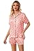 Features: 2 Piece Pajama Set featuring classic sleepwear style.Short sleeve sleepwear with notch collar,button front pajamas shirt and one chest pocket design. Pajama shorts for women with soft elastic waist that fits for any body size and makes relaxing as comfort as possible.