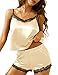 SEXY PAJAMA SHORTS: 2 Piece pajama set includes a satin shorts, featuring elastic waist and contrast lace, going well with cami pj top. Luxurious lingerie set is as flattering as you'd hope.