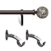 Dark brown metal rod and hardware with Oil Rubbed Bronze decorative cast resin finials