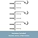 Includes: one telescoping bay window curtain rod with finials, 6 brackets, 2 swivel connection knuckles, screws, drywall anchors, and installation instructions