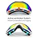 PROFESSIONAL VENTILATION- Designed to reduce fogging and optimizes the flowing air over the inside of the lens. ski goggles provide smooth air-flow system which brings fresh air and exhaust moisture quickly and effectively.