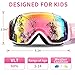 Friendly Protection - All ski goggle lenses use spherical PC lenses to provide crystal-clear clarity andUV400 Protection, protecting kid's eyes from the sunshine.