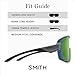 Fit: Medium fit. Available in Low Bridge Fit. QuickFit strap adjustment system lets you find the right fit fast. AirEvac ventilation system integrates with Smith helmets for fog-free lenses.
