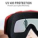 ⛷☀IMPACT RESISTANT POLYCARBONATE LENSES w/ 100% UV PROTECTION - Polycarbonate is impact resistant, virtually unbreakable and extremely scratch resistant. Have you tried to break a polycarbonate CD (compact disc) before? It can’t be done! Cover over goggle lenses are “UV400” rated, means the lenses will block UV light up to 400 nanometers (100% UVA & UVB rays)