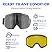 Swap Out Lens Quickly: Our ski goggles with interchangeable lenses use 8 neodymium magnets that allow you to quickly and easily swap out different lenses while maintaining a firm and secure hold. Our magnetic snowboard goggles don’t require any tools to change the lenses – just snap on and snap off
