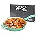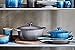 ECO-FRIENDLY STONE NONSTICK COATING: The 12inch nonstick frying pan with lid is made with stone derived nonstick coating,which is ultra non stick and durable. Food just slides right off the truly nonstick surface for perfect cooking. Vibrant blue enamel on the outside of the large nonstick skillet adds a pop of color to your kitchen.