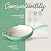 Compatible with induction cooktop (Ensure induction burner works with bottom diameter of 7”), gas stove, ceramic cooktop, electric coil and oven. NOT safe for microwave or dishwasher.