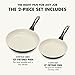 Cookware pan set includes: 8" frying pan, 9.5" frying pan and 11" frying pan