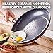 Made with clean, non-toxic materials: Thanks to the diamond-infused ceramic coating—made from sand!—our two nonstick options are non-toxic and will never blister or peel (unlike traditional nonstick). Diamond reinforcement adds durability, but also allows for superior browning (it is roughly 4x more conductive than copper).