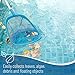 The pool skimmer quickly and easily scoops out leaves, algae, grass, bugs, and more debris from the water's surface.