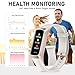 🏃 【24/7 Heart Rate / Body Temp / Sleep Monitor】This fitness tracker can also monitor your heart rate and body temperature throughout the day. This fitness tracker supports real-time dynamic heart rate, blood oxygen, blood pressure ,temperature monitoring so you can know more about your physical condition.Track your time indeep Sleep, light Sleep, awake stage to better understand your sleep quality each night.The fitness watch analysis your sleep data and gives you a nightly sleep score in the app, to help you improving your sleep habits.