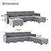 ✔L-Shaped Couch Deminsions: Demension of this sectional sofa set is 31.5'' H x 96.8'' L x 70.4"W. Ottoman: 16.9' H x 27.9'' L x 17.7"W , Seat Depth: 18.5". Leg Height: 4.3". Besides, sectional couch has hooks to connect each other closely or easily removed when you need. Only takes about 30 minutes for installation!