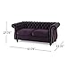 Product 1: Antique styling with a luxe edge meet your new furniture crush; an opulent velvet Loveseat sofa in rich Blackberry. The bold baroque aesthetic is highlighted by refined traditional details that the true connoisseur will recognize, including elegant scroll arms, Classic tufting, Rivet Studs, and sensual turned legs that would make the Victorians blush. Dimensions (inches): 30. 50 D, 51. 50 W, 30. 75 H. Seat: 22. 00 D, 37. 25 W, 17. 50 H